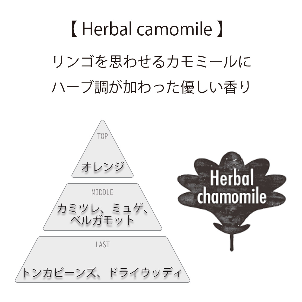 ■香り:りんごを思わせるカモミールにハーブ調が加わった優しい香り